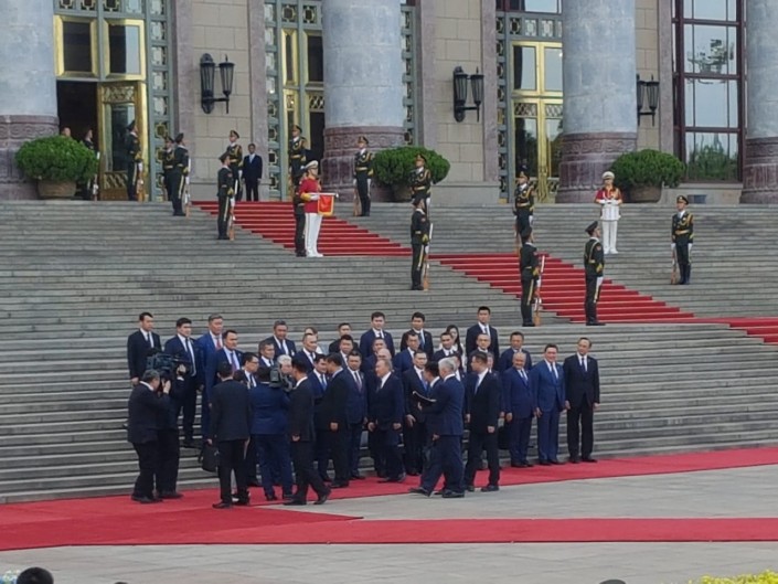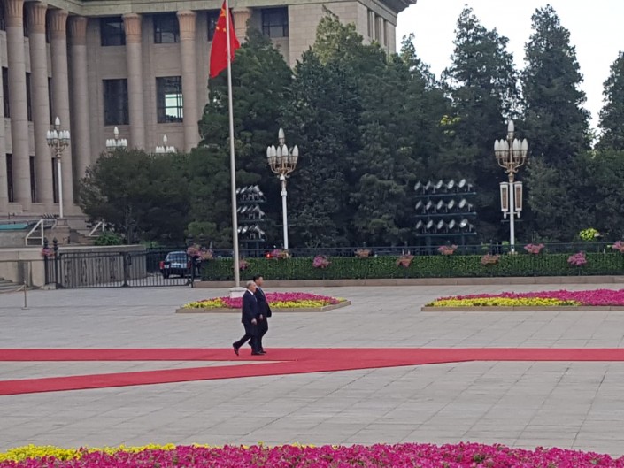 Встреча лидеров двух стран проходит в Доме народных собраний.