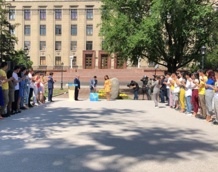 "Капсулу времени" с посланием будущему поколению Нурсултан Назарбаев заложил на аллее перед зданием КБТУ в Алматы, передает корреспондент Tengrinews.kz.