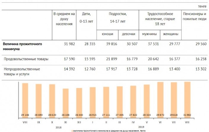 Сумма прожиточного минимума в августе составила 31 982 тенге, передает Tengrinews.kz со ссылкой на Комитет по статистике.