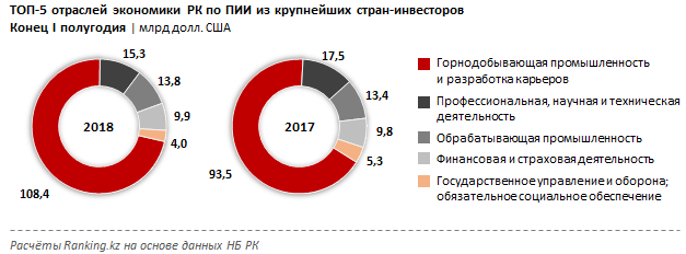 Казахстан за первое полугодие 2018 года привлек в национальную экономику 12,3 миллиарда долларов, это на 15,4 процента больше, чем годом ранее - 10,6 миллиарда долларов. Примечательно то, что 92,4 процента (11,3 миллиарда долларов) всех инвестиционных потоков в страну сформировали всего 10 стран.