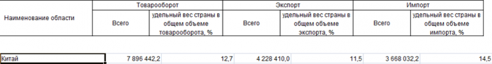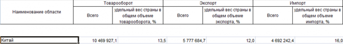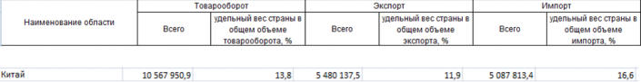 Товарооборот с Китаем в 2016 году. Данные Комитета по статистике МНЭ РК