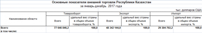 По данным Комитета по статистике МНЭ РК в 2015, 2016 и 2017 годах общий экспорт Казахстана превышал импорт.