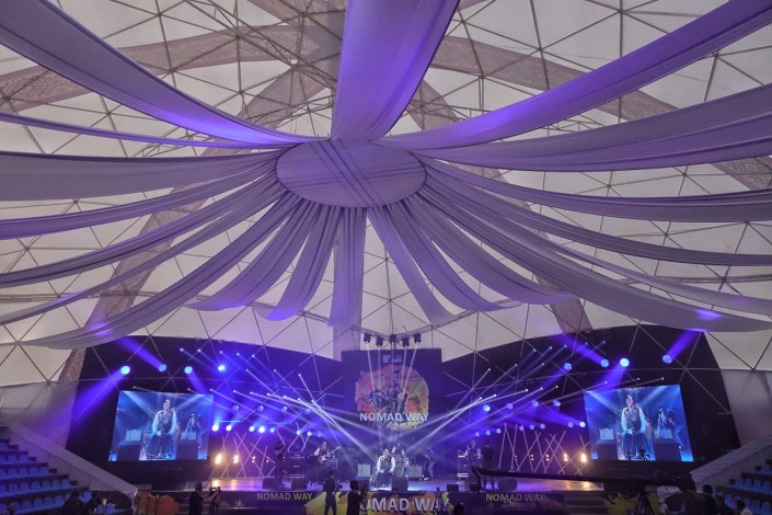 Удивительные The Magic of Nomads на сцене фестиваля экспериментировали в самых разных музыкальных жанрах, исполнив джазовые, рок, фолк и соул композиции на казахских инструментах. В их мелодиях - крик степного беркута, шепот ветра и топот коней гармонично сочетаются с джазовой атмосферой.