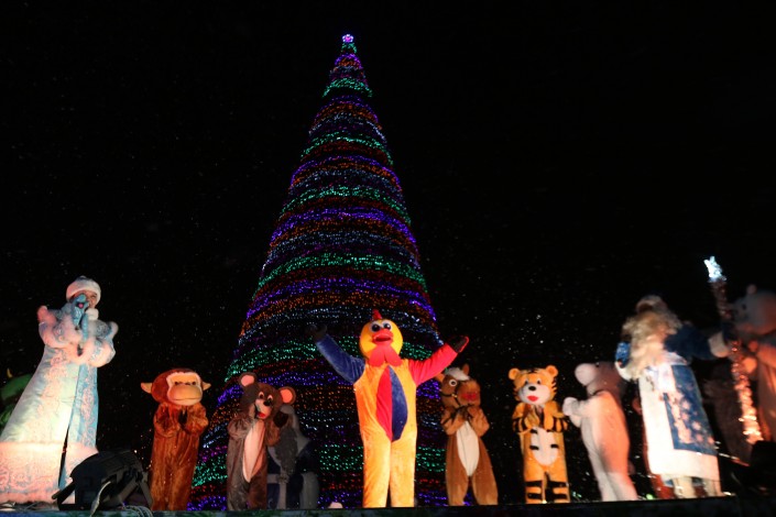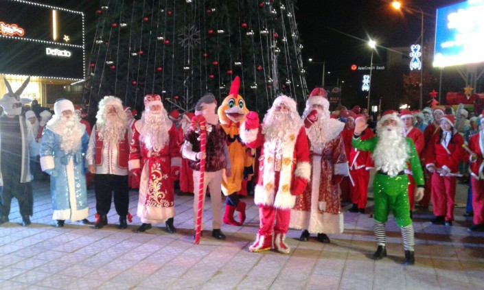 В Усть-Каменогорске главная городская елка зажглась еще на минувших выходных. Традиционную акцию по торжественному зажжению огней на новогоднем дереве "Елочка, гори!" предварил парад Дедов Морозов. Мероприятия, посвященные празднованию, прошли на площади Республики перед зданием областного акимата, где и установлена елка. Многие примерили разнообразные костюмы Дедов Морозов и Снегурочек. В торжестве приняли участие больше сотни новогодних персонажей. А после того как огни на елке были зажжены, начался праздничный концерт.