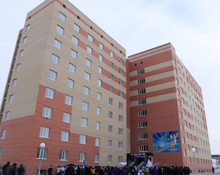 Общая площадь оснащенного в соответствии со всеми стандартами общежития составляет более 8,6 тысячи квадратных метров. Для получения знаний и эффективного использования свободного времени имеются читальный зал, доступ в Интернет, тренажерный зал, комната отдыха и так далее. На строительство общежития было направлено порядка одного миллиарда тенге внебюджетных средств.