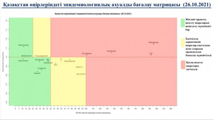 Ну а в "зеленой" зоне - Шымкент, Алматинская, Атырауская, Актюбинская, Западно-Казахстанская, Туркестанская, Жамбылская и Мангистауская области.