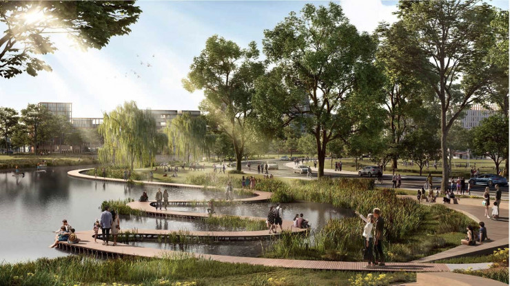 "По планам в данном районе в перспективе построят учреждения для досуга школьников, поликлинику на 400 посещений в смену, медицинский центр на 300 посещений, три школы на 5500 мест при имеющейся потребности в 4800 мест, три детских сада на 1035 мест и встроенные помещения для детских дошкольных учреждений. Будет возведено 1386,1 тысячи квадратных метров жилья. Планируется создать зеленый пешеходный бульвар у существующего водоема. При этом вся территория квартала будет благоустроена для комфорта и удобства горожан", - сообщили в управлении.