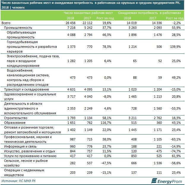 Число вакансий в крупных и средних компаниях Казахстана увеличилось на 20 процентов, что свидетельствует о нарастании кадрового голода. Об этом сообщают аналитики Energyprom.kz.