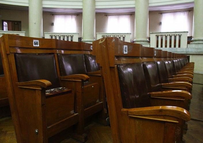 "Система переводов была вся рабочая. Оборудование заменили еще при Верховном совете, в 90-х годах. Микрофоны сломали уже студенты университета. Для голосования тоже. Все было рабочее. Когда стали пускать студентов, особенно второй набор, они вырывали микрофоны, бросали. Горстями собирали. Жалко было. У меня сердце кровью обливалось. Когда уже все микрофоны сломали, начали ножки для микрофонов срезать кусачками", - говорит она.