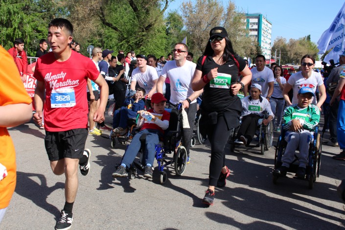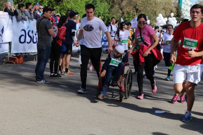 Кроме того, специального приза удостоен марафонец Балтабай Султанов. Мужчина преодолел дистанцию 10 километров на инвалидной коляске. "Я второй раз участвую в марафоне. Сложности были при подъеме, но ребята марафонцы помогли. Этим я хотел сказать, чтобы люди ценили свое здоровье. Я хотел сказать, что человек на инвалидной коляске может быть равным со всеми", - сказал Султанов.
