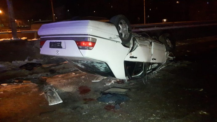 Авария произошла на пересечении улиц Кабдолова и Саина. По словам очевидцев, водитель Mercedes, двигавшийся на запад по Кабдолова, не справился с управлением и на полном ходу врезался в бетонное ограждение. От удара автомобиль перевернулся.