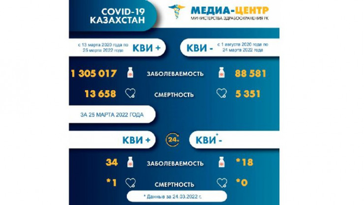 За прошедшие сутки в Казахстане зафиксировали 34 новых случая заражения КВИ.