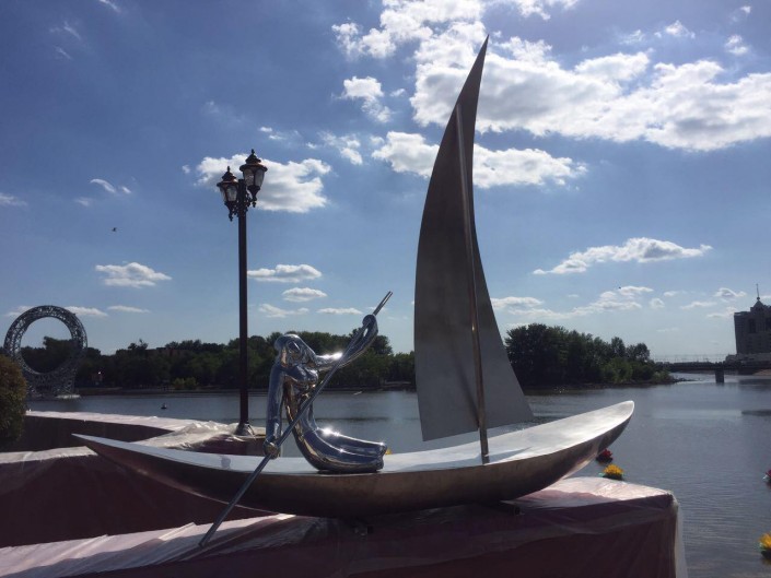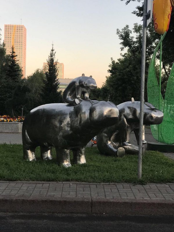 Новые хромированные художественные инсталляции появились в Астане в праздничные дни. Среди них огромная рука с жестом "ОК", бегемоты, велосипедист и девушка на лодке, сообщает Tengrinews.kz. Фотографии новых архитектурных форм района разместил в Facebook аким района "Сарыарка" Арман Турлыбек.