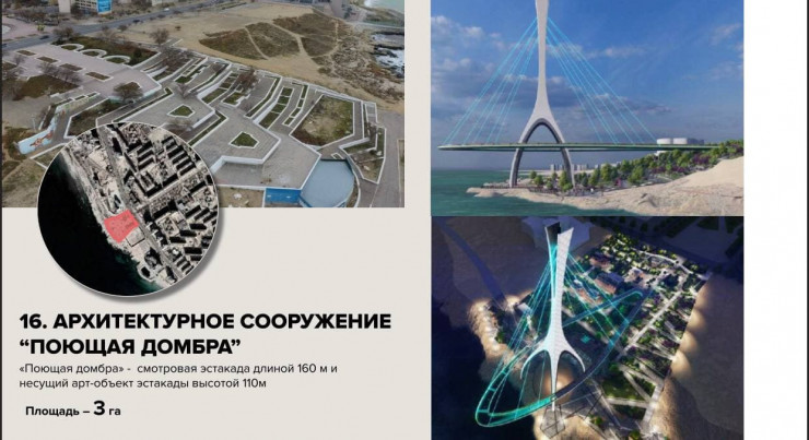 При этом, как подчеркнул Балкыбеков, представленное сооружение - это не только архитектурная форма, но и достаточно функциональная эстакада. Поскольку, по его словам, под "поющей домброй" можно было бы разместить амфитеатр, где различные художественные сообщества смогли бы показывать свое искусство туристам и местным жителям.
