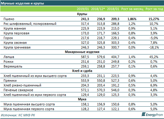 Цены на крупы по итогам января текущего года поднялись менее чем на 2 процента за месяц, на макаронные изделия - менее чем на 1,5 процента. В сегменте хлебобулочных изделий и сдобы незначительно вырос в цене лишь пшеничный хлеб высшего сорта (+0,9 процента за месяц), цены на прочую продукцию поменялись еще меньше. Также менее чем на 1 процент увеличились цены на муку.