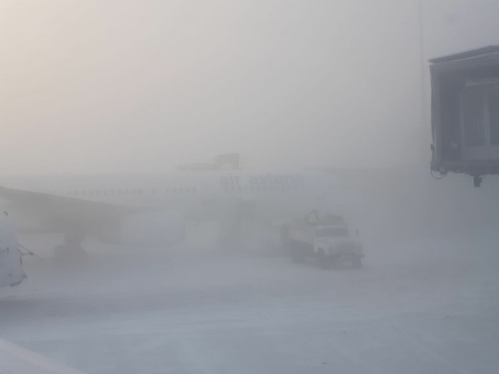 Как пояснили в аэропорту Алматы, по состоянию на 12 часов 4 февраля фактическая видимость от 600 до 100 метров, вертикальная - 40 метров, коэффициент сцепления - 0,35.
