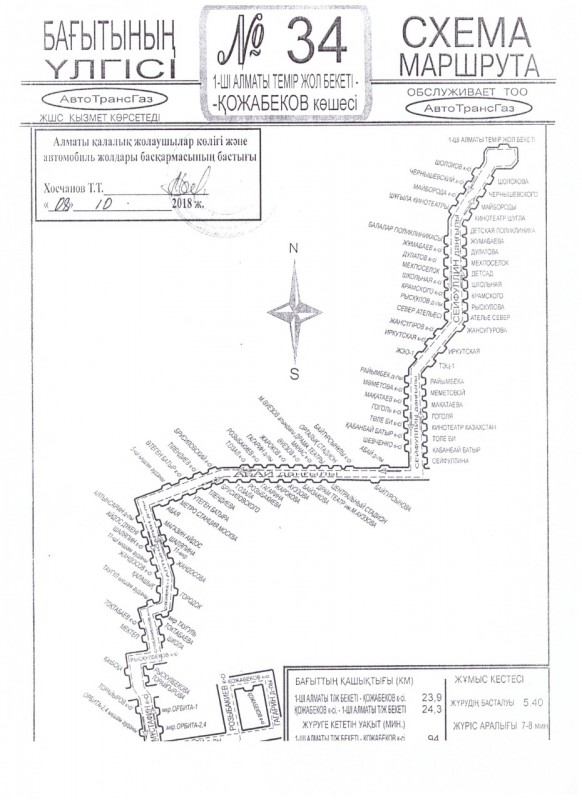 - маршрут № 73 "Вокзал Алматы-1 - улица Рихарда Зорге - улица Акан Серы - проспект Сейфуллина -улица Жансугурова - улица Тобаякова - проспект Сейфуллина - проспект Райымбека - улица Кунаева - улица Макатаева - улица Жетысуская - проспект Райымбека - улица Добролюбова - улица Оренбурская - ВОАД - улица Балтабаевская - улица Базарбаева - и в западном направлении улица Добролюбова - проспект Райымбека - улица Жетысуская - улица Макатаева - проспект Назарбаева и далее по маршруту".
