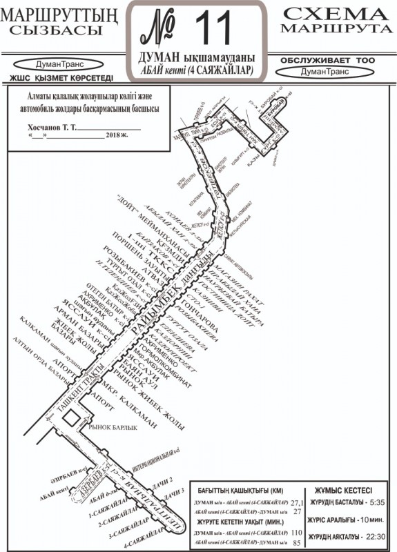 Упразднен маршрут № 49 "поселок Абай - автовокзал "Саяхат" как дублирующий маршруты № 4, 7, 11, 23, 50, 54, 78, 141, в связи с упразднением маршрута № 49 продлен маршрут № 11 до поселка Абай (Абайские дачи).