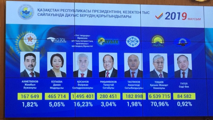 Касым-Жомарт Токаев - 6 539 715 голосов - 70,96 процента,