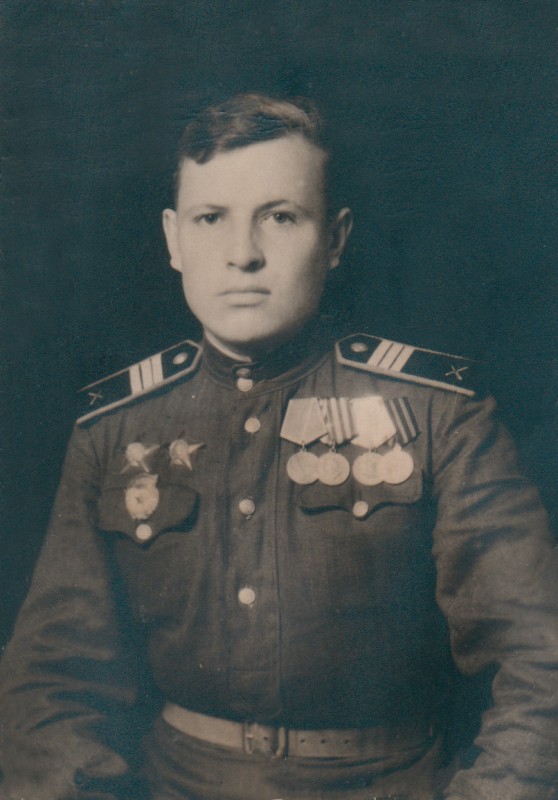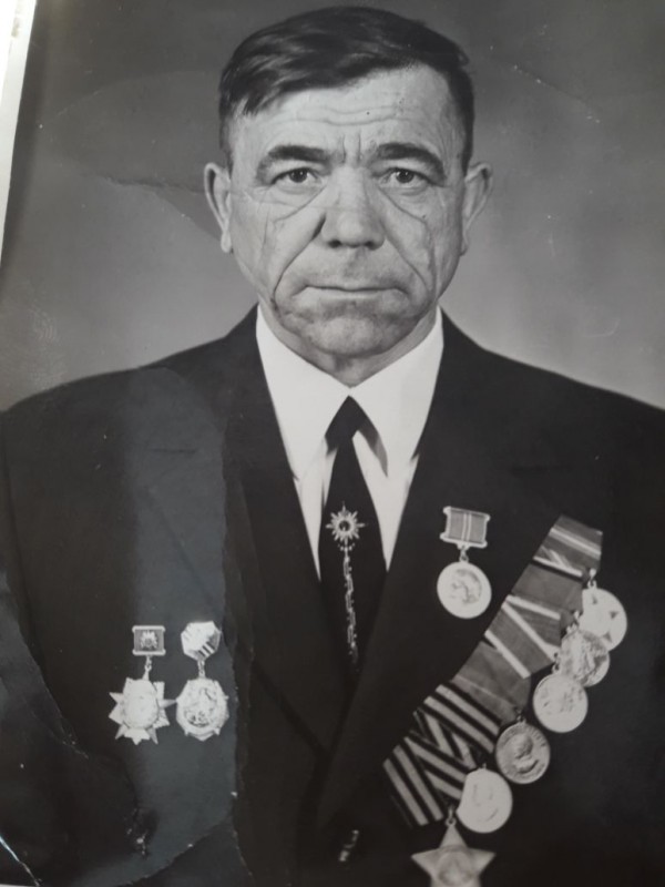 За проявленное мужество и героизм его наградили орденом Красной Звезды, а также двумя орденами Отечественной войны первой и второй степени, медалью "За отвагу". В 1944 году после тяжелых ранений моего деда комиссовали. До середины 80-х годов он проработал в совхозе, где вышел на заслуженный отдых".