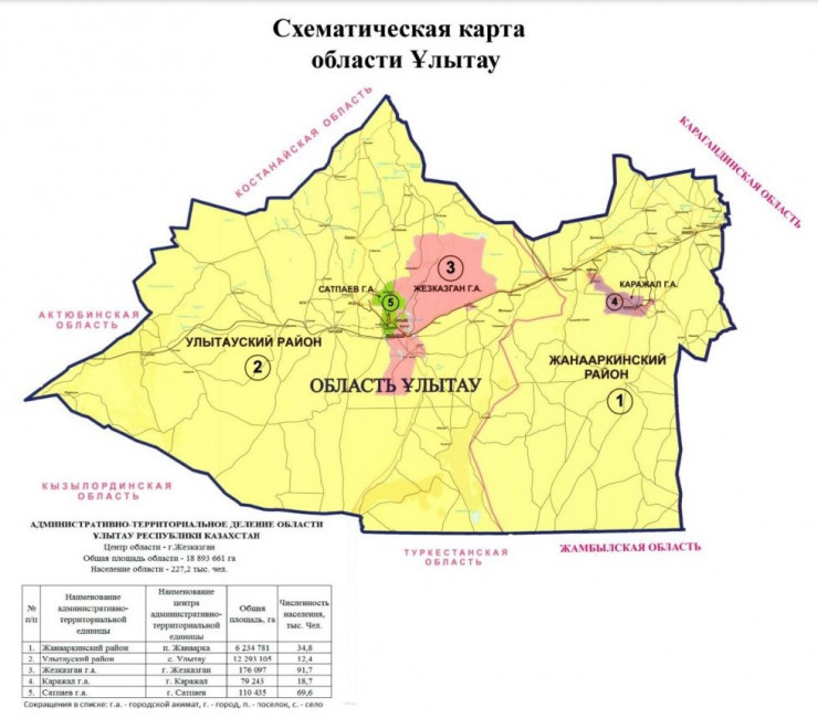 Правительство постановило изменить границы Карагандинской области путем исключения земель общей площадью 18 миллионов 893 тысячи 661 гектар городов Жезказган, Сатпаев и Каражал, Жанааркинского и Улытауского районов для передачи в состав области Ұлытау.