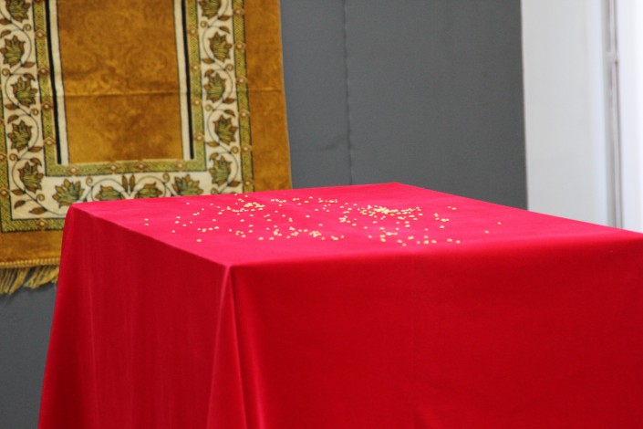 Как стало известно, для останков в Музее выделили специальную комнату. Контейнер на колесиках установили по центру комнаты, застелили его красным полотном и рядом зажгли свечи.