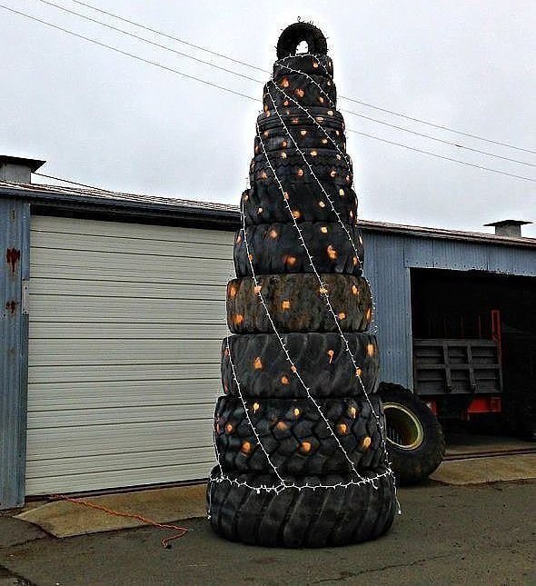 Суровая мужская елка из шин.