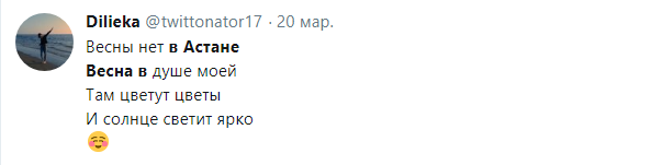 "Наурыз, чувствуется начало долгожданной весны! В Алматы урюк расцвел. Астанчане надели праздничные цветные подштанники".
