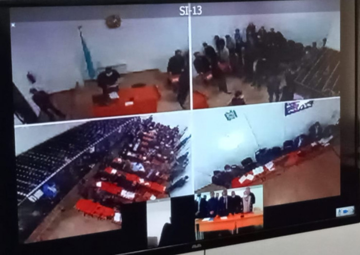 Подсудимые слушают приговор в здании суда Тараза № 2