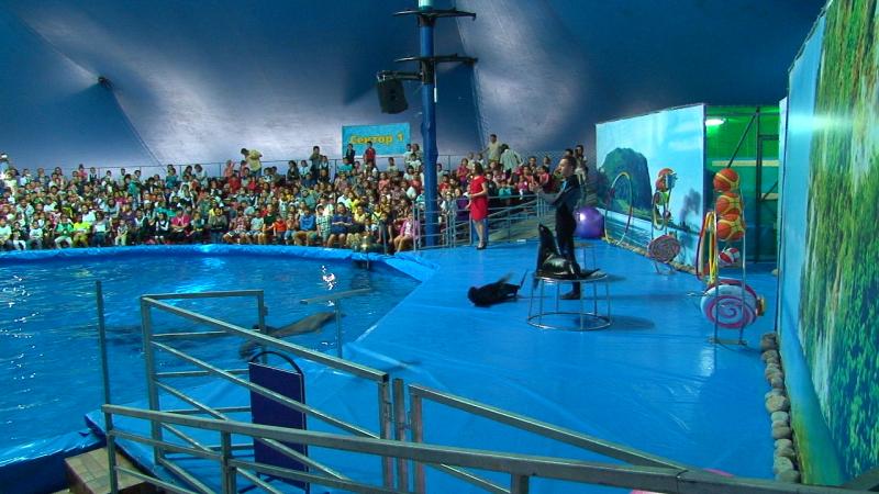 Всего новый дельфинарий в Алматы имеет шесть морских животных: тихоокеанский бутылконосый дельфин по имени Николь, два черноморских дельфина афалина - Катя и Юми, два южноамериканских морских котика Анфиса и Василиса, а также морская львица по имени Злата. Все животные были доставлены в Алматы из Одессы. Там находится главный офис компании и центр подготовки специалистов. "Когда мы переедем в стационарное помещение, мы также хотим привезти дельфина белуху. Периодически к нам смогут приезжать новые животные, и это будет сюрпризом для наших гостей", - добавил Старагин.