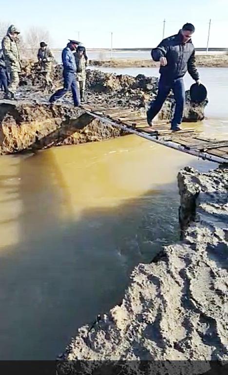 17.35 - Дорогу, ведущую к тюрьме в поселке Кушмурун Костанайской области, накрыло талыми водами, один из участков и вовсе обвалился. На этом месте образовалась большая яма. Сотрудники учреждения добираются до колонии пешком и в резиновых сапогах.