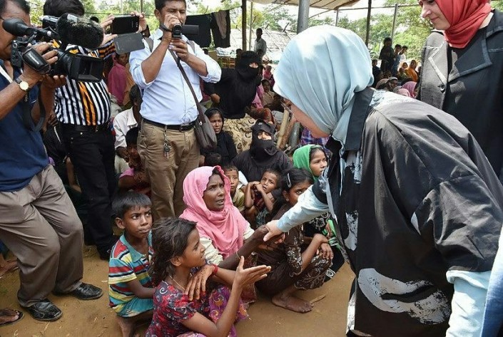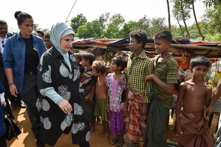 Накануне его супруга и сын, а также турецкие министры посетили лагерь беженцев мусульман-рохинджа в Бангладеше. Эмине Эрдоган призвала международное сообщество принять меры для прекращения насилия против мусульманского населения штата Аракан (Ракхайн) в Мьянме.