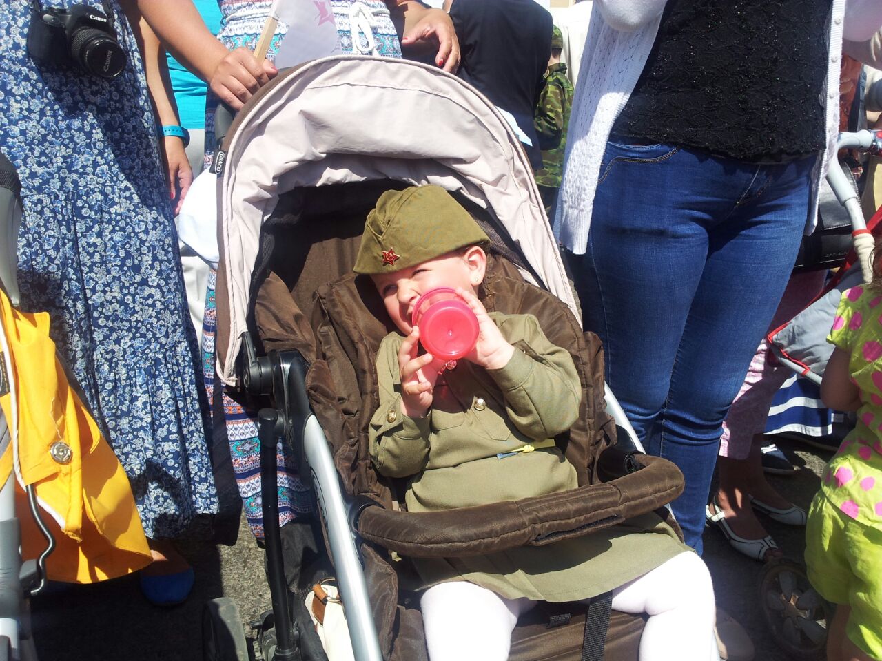 В рамках мероприятия также состоялась церемония возложения цветов к памятнику "Двум воинам". Помимо самого шествия и концерта с праздничной программой, также в рамках акции была организована выставка военной техники с импровизированной полевой кухней.