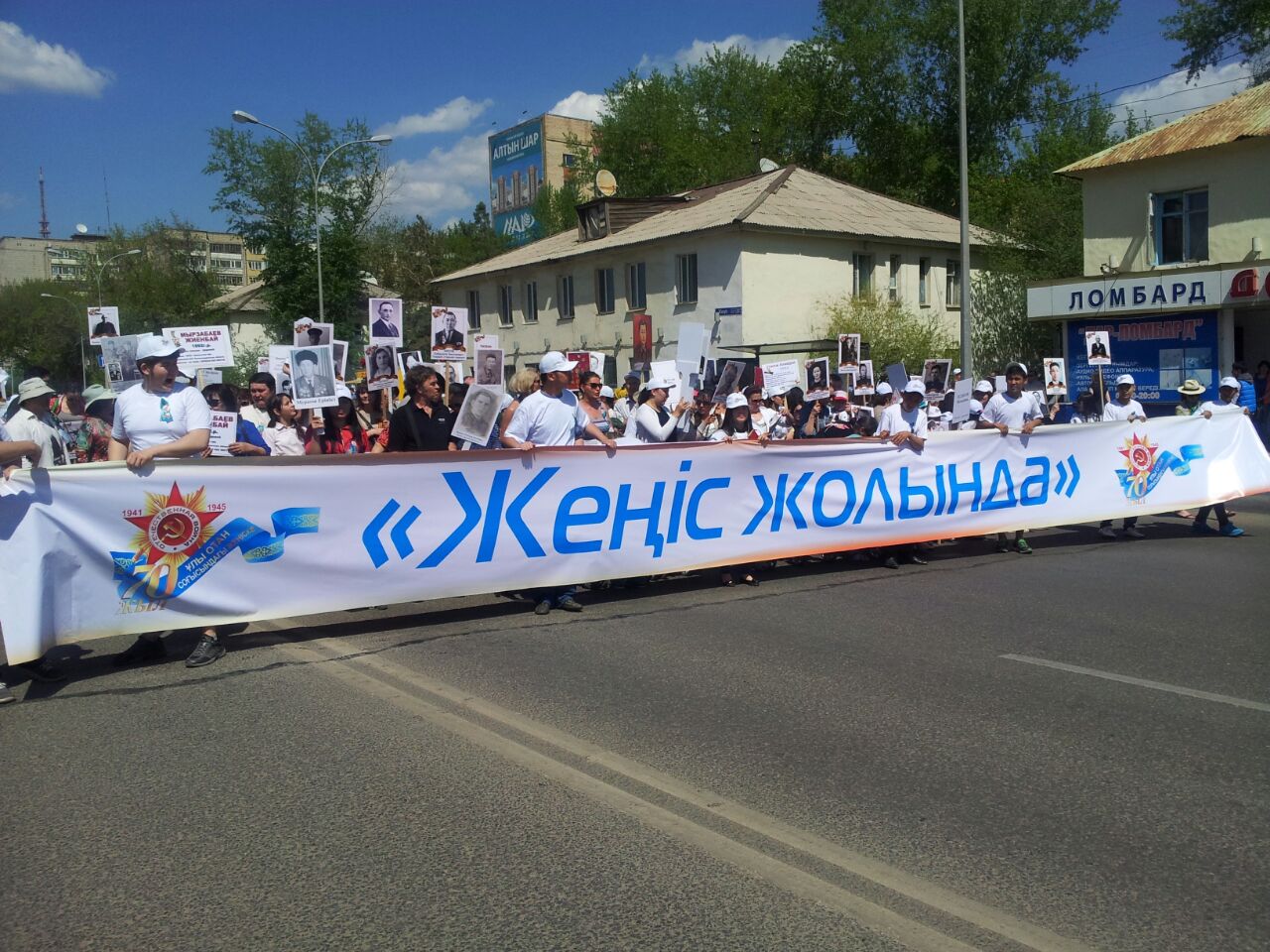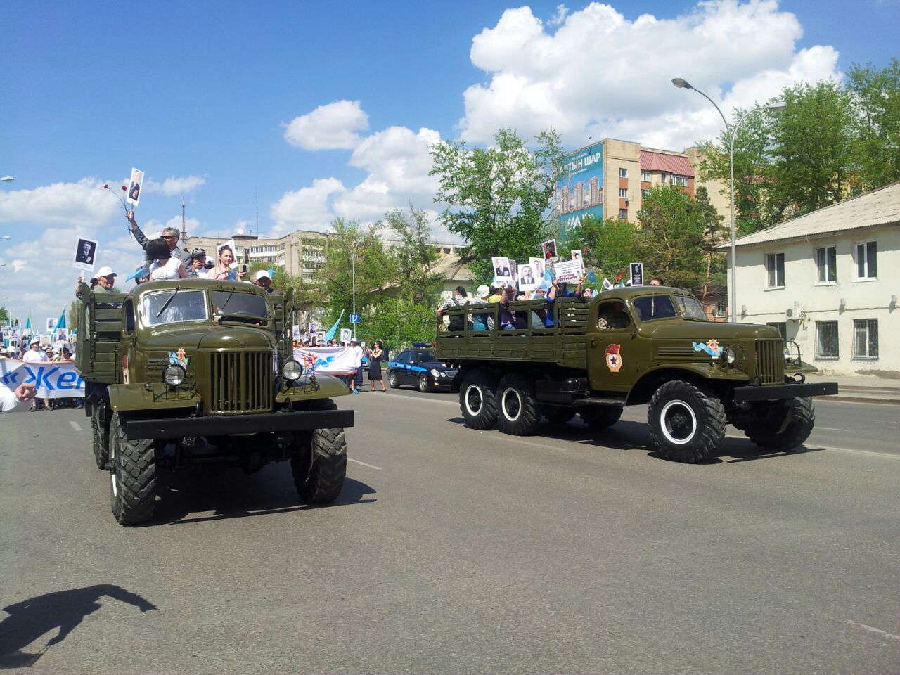 Они рассказали, что шествие по проспекту Победы проходило здесь не случайно. По их словам, в 1941 году по этой улице на фронт провожали юношей и девушек Акмолинской области. А в 1945 году здесь же и встречали их, вернувшихся с Победой. Отметим, что в трудовую армию из Акмолинской области были призваны 32 415 человек. Героями Советского Союза стали 43 акмолинца.
