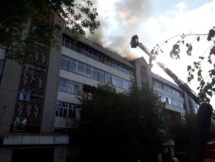 По словам очевидца Максима Сахнова, пожар из квартиры на пятом этаже перекинулся на крышу дома. На месте, по его словам, работали четыре единицы техники противопожарной службы города.