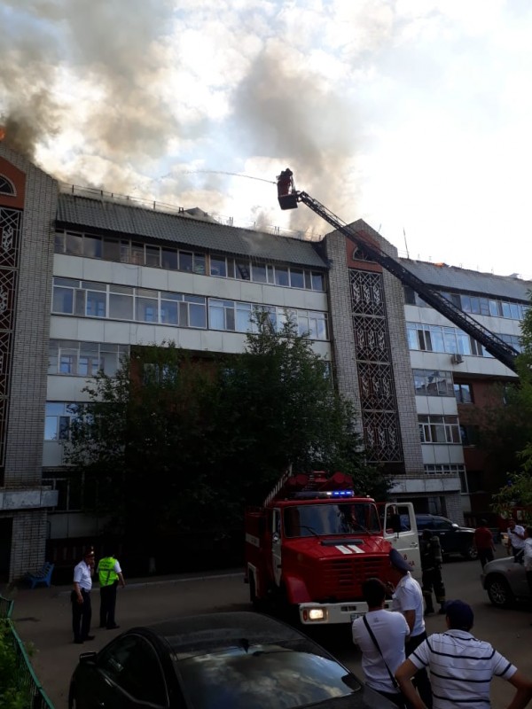 По данным пресс-службы КЧС МВД, вызов поступил в 17.52. Площадь пожара устанавливается. На месте работает 15 единиц техники и 55 человек личного состава ДЧС, проводится эвакуация. Пострадавших нет.