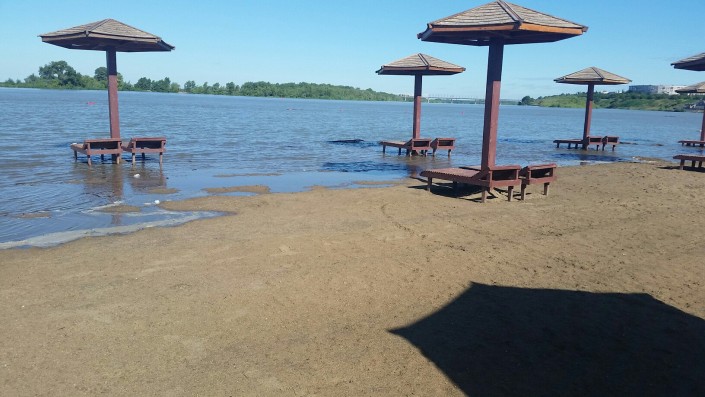 Из-за продолжающихся сбросов воды затопленной оказалась часть городского пляжа в Павлодаре. Фото с места происшествия очевидцы разместили в соцсети ВКонтакте в группе "Это Павлодар, Детка". Подтоплены навесы с лежаками, детская игровая площадка с батутами и пляжными формами. Как сообщили в ДЧС Павлодарской области, пока ситуация контролируема.