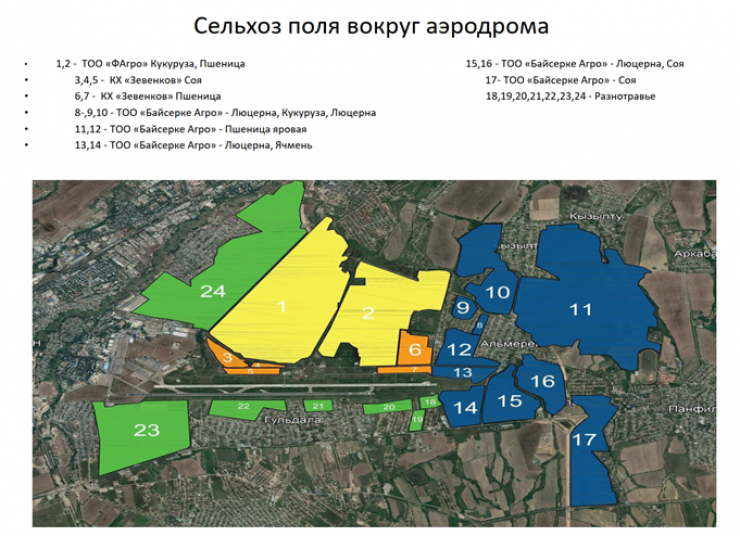 "Учитывая наиболее сложную орнитологическую обстановку в Алматинском аэропорту, Авиационной администрацией Казахстана в августе в адрес акиматов Турксибского района Алматы и Талгарского района Алматинской области выданы инспекторские предписания с требованием принять меры по ликвидации выявленных скотобоен и несанкционированных свалок на прилегающей к аэродрому Алматы территории.