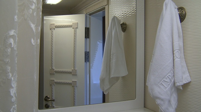 Внутри таких поездов есть душ, телевизор и многое другое. Среди вагонов есть и так называемый "кунаевский" - когда-то на нем ездил сам Динмухамед Кунаев. Вагон модернизировали, но интерьер и некоторые вещи оставили прежними.