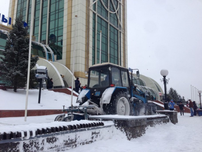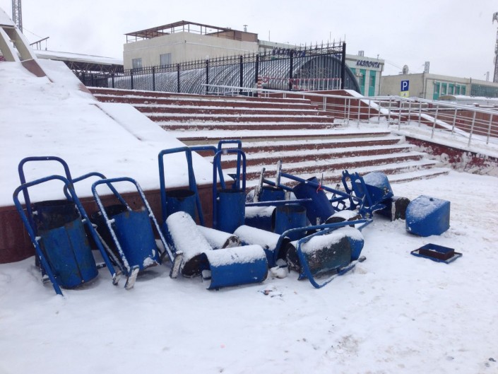 Коммунальные службы активно вычищают пространство от снега и демонтируют мусорные урны.