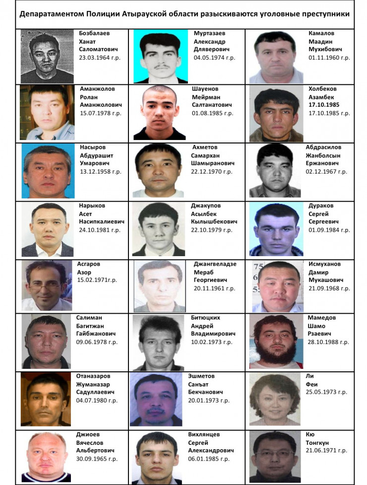 Управление криминальной полиции ДП Атырауской области опубликовало список разыскиваемых уголовных преступников, передает Tengrinews.kz со ссылкой на AtyrauPress.
