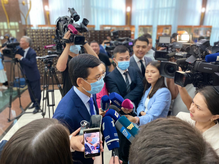 В кулуарах журналисты записывают чиновников. На фото - министр просвещения Асхат Аймагамбетов.