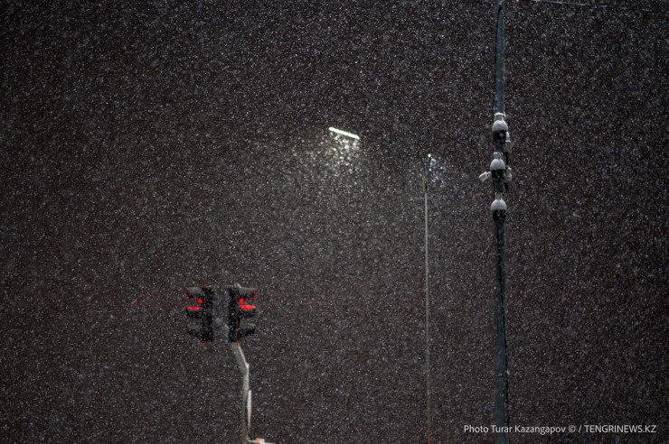 В столице Казахстана ночью выпал снег.
