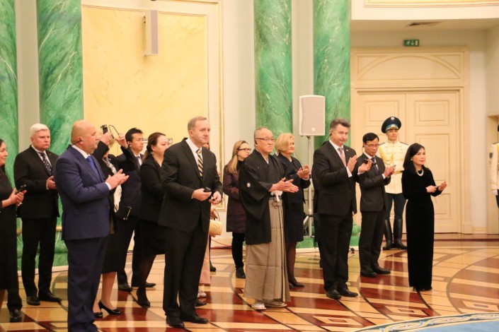 Посол Японии в Казахстане Тацухико Касаи обратился к Нурсултану Назарбаеву на казахском языке. В своей приветственной речи дипломат выразил свое почтение.
