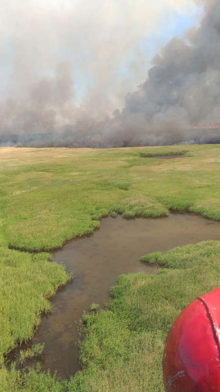 "В 10:45 пожар был локализован, но о ликвидации пока говорить не можем, так как горит еще камыш посередине озера. На улице жарко, где-то дымок возобновляется, сразу же тушим, опахиваем. Пожар возник на территории системы озер, поэтому из-за условий местности, там вода, грязь, не везде может пройти спецтехника, в этом есть небольшие сложности. Наш коллектив пожарной станции и добровольные пожарные формирования Наурзумского района, пожарные части, Казлесавиаохрана помогала, тушили с воздуха. Огонь на территорию заповедника зашел с сопредельной территории, с земель сельхозформирований", - сообщил заместитель директора Наурзумского заповедника Канат Батырханулы.