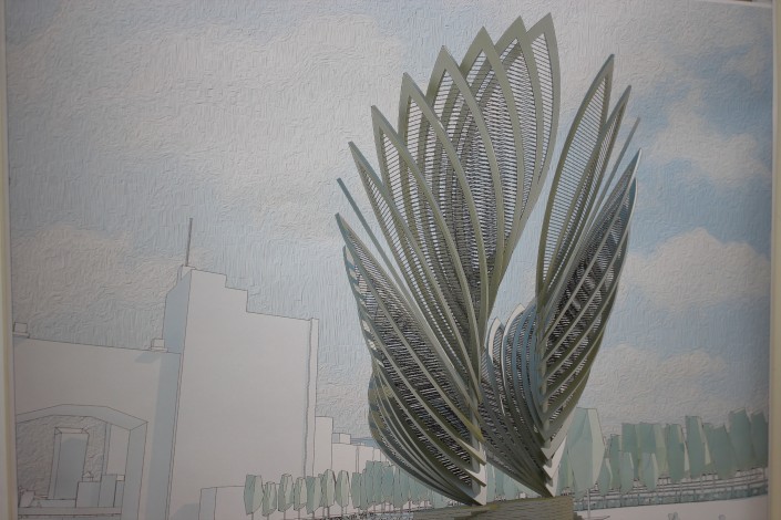 В НИПИ "Астанагенплан" выставлены все работы участников конкурса. Для объективного решения судей авторство работ не раскрывается, каждой конкурсной работе присвоен индивидуальный номер. Мы выбрали лишь малую часть работ, чтобы у читателя могло сложиться примерное впечатление о возможном новом монументе.