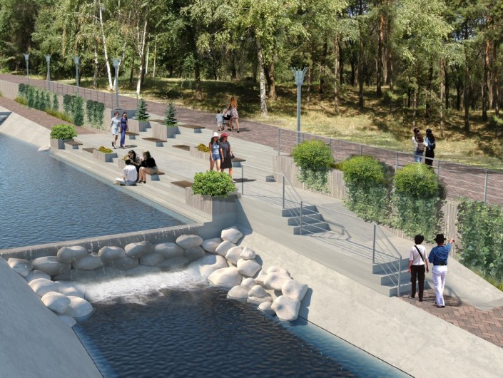 На набережной этой реки архитекторы порекомендовали выполнить благоустройство в едином стиле, чередовать активные и тихие зоны. Также нужно оставить существующее озеленение и сократить площадь твердых покрытий.