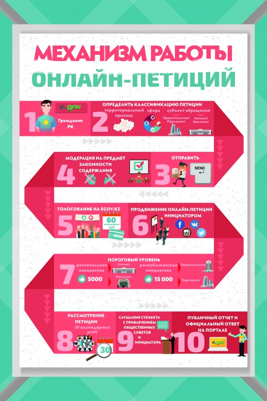 Инфографика механизма работы онлайн-петиций в Казахстане