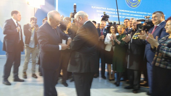 После чего Глава государства продолжил разговор с делегатами внеочередной сессии. "Огромное спасибо всем членам Ассамблеи народа Казахстана. 20 лет нашей Ассамблее - уникальной организации. 20 лет спокойствия, 20 лет мира и развития Казахстана. Ассамблея от имени ста этносов делегирует девять своих депутатов, которые должны защищать интересы, такого нигде нет. (...) Я знаю, что некоторые беспокоятся, волнуются, а что будет дальше. Как наши дети, внуки будут жить. Не надо беспокоиться. Мы с вами строим эту страну, никто не будет ущемлен, не надо уезжать учиться за границу куда-то", - сказал Президент страны.