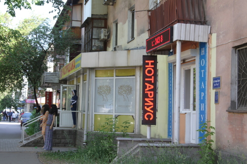 На каждом шагу на улице Зорге расположены нотариальные конторы.